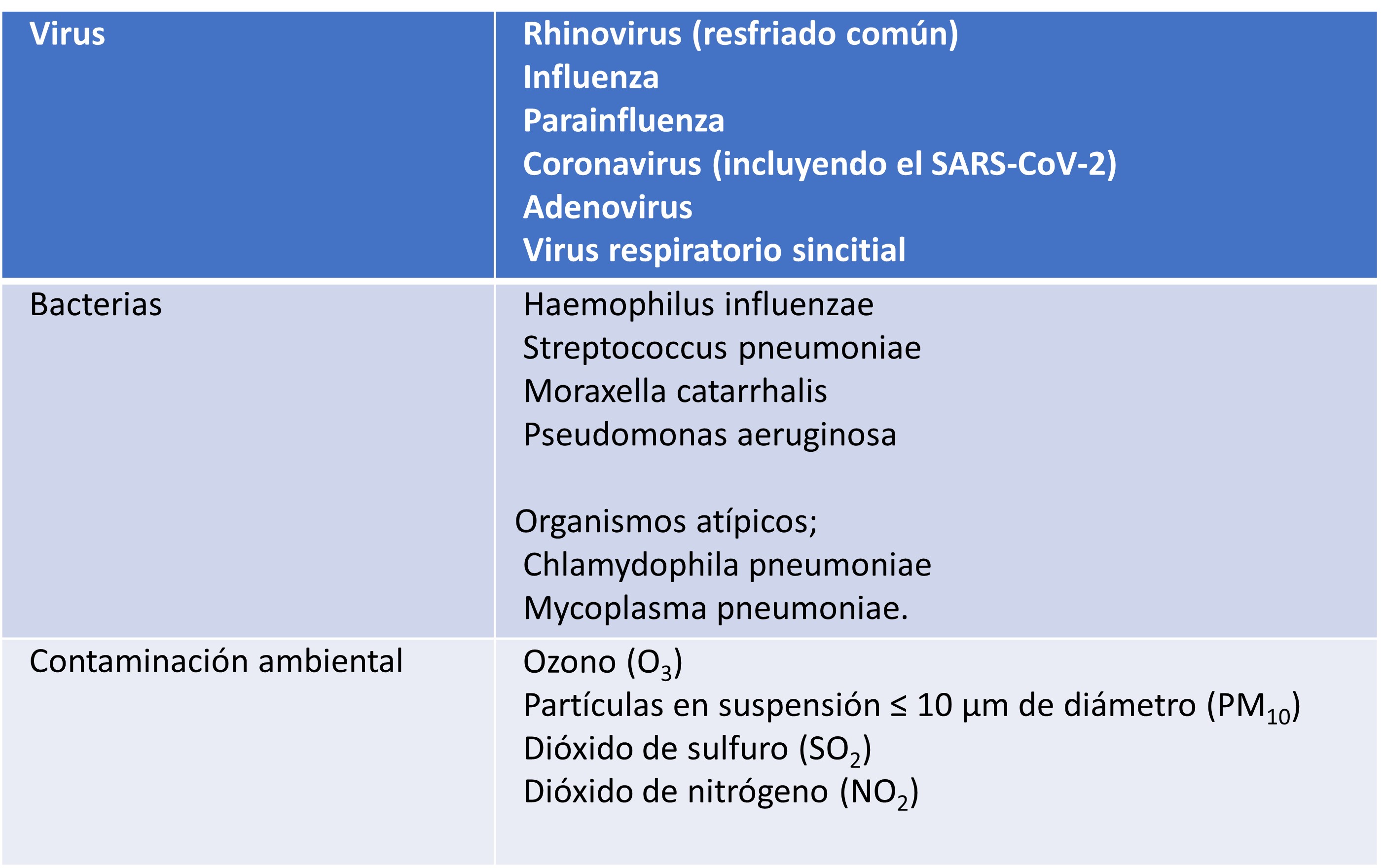 La tabla 4 recoge los desencadenantes más frecuentes del SAE (24). Identificarlos es de gran importancia para un adecuado tratamiento. Sin embargo, aproximadamente en un tercio de los casos no se llegan a establecer. Entre los factores desencadenantes más reconocidos se encuentran las infecciones respiratorias, tanto víricas como bacterianas. El criterio que mejor predice la infección bacteriana es el cambio en la coloración del esputo (25). Por el contrario, el esputo mucoso pocas veces se asocia a infección bacteriana (26). El análisis de esputo (tinción de gram y cultivo) estará especialmente indicado en aquellos pacientes con SAE graves o muy graves que presenten frecuentes agudizaciones, necesidad de ventilación asistida o ante un fracaso terapéutico. Utilizando técnicas moleculares como la reacción en cadena de polimerasa con transcriptasa inversa (RT-PCR) se ha podido comprobar que entre el 22-64% de las agudizaciones de EPOC son víricas (27). También se ha identificado una proporción importante de coinfección vírica-bacteriana (28). Recientemente se han comercializado sistemas de diagnóstico molecular automatizado que permiten detectar simultáneamente diversos virus respiratorios. El precio de estas determinaciones no permite todavía generalizar su uso en la práctica clínica. Sin embargo, es muy probable que en un futuro inmediato este tipo de técnicas se puedan incorporar al esquema diagnóstico del SAE. La pandemia por SARS-CoV-2 ha acelerado el uso en la práctica clínica de la búsqueda de virus a través de la RT-PCR.